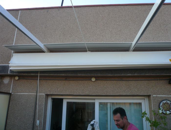 Per evitar que la brutícia de la teulada caigui sobre de l’estructura, un cop està recollida, se li instal.la una teuladeta d´alumini, protegint així tot el teixit. Un cop obertes les dues estructures, simula les onades del mar i refresca l’ambient. L’accionament és manual i senzill i l’alumini dels perfils també són en color blanc.
